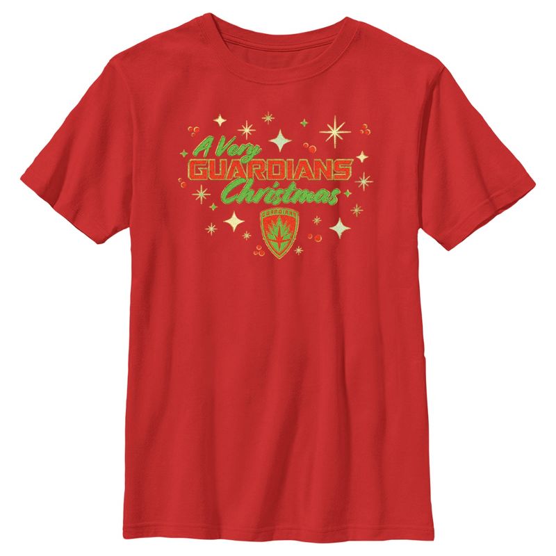 - تباهَ بأزيائكَ الأنيقة مع هذا التيشيرت الجديد للأولاد، مثاليٌّ لأعياد الميلاد! يحمل عبارة "عيد ميلاد رائع لحراس المجرة" مزينةً بنجومٍ لامعةٍ وبريق، وشعار درع حراس المجرة في الأسفل.