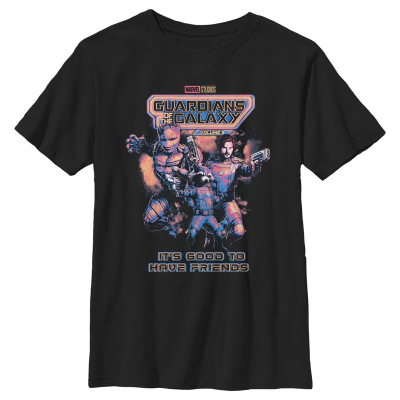 - تباهَ بجمالك مع هذا التيشيرت الجديد الأنيق للأولاد، مثالي لجميع المناسبات! يتميز بطبعة ريترو رائعة لجروت، وستار-لورد، وروكيت راكون، مع عبارة "من الجيد أن يكون لديك أصدقاء".