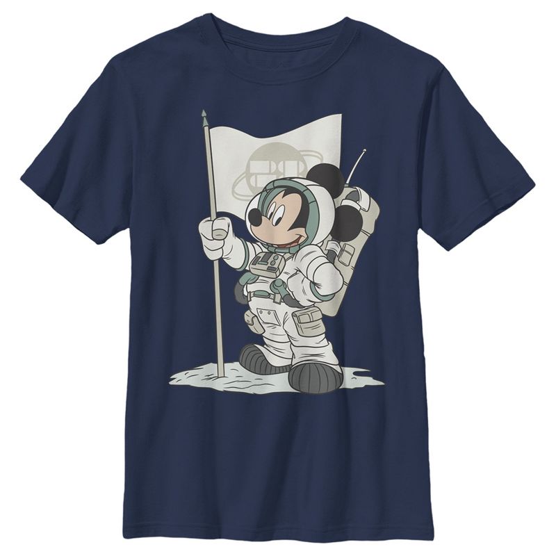 - تباهَ بأزيائكَ الأنيقة مع هذا التيشيرت الجديد للأولاد، مثالي لجميع المناسبات! يُزيّنه شخصيتكَ المفضلة، ميكي ماوس، على سطح القمر.