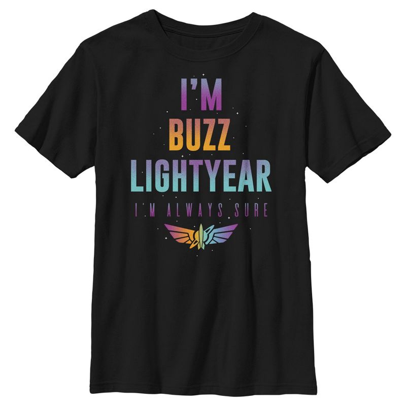 إلى ما لا نهاية! ارتقِ بأناقتك إلى آفاقٍ جديدة مع ملابس جديدة مرخصة رسميًا لجميع أفراد العائلة من فيلم لايت يير الجديد المرتقب، والذي يروي قصة باز لايت يير، بطل فيلم "قصة لعبة" المحبوب! يتميز هذا التيشيرت للأولاد بعبارة "أنا باز لايت يير، أنا متأكد دائمًا" بأحرف كبيرة ملونة.