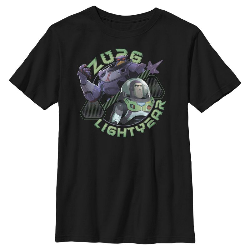 إلى ما لا نهاية! ارتقِ بأناقتك إلى آفاقٍ جديدة مع ملابس جديدة مرخصة رسميًا لجميع أفراد العائلة من فيلم لايت يير الجديد المرتقب، والذي يروي قصة باز لايت يير، بطل قصة لعبة المحبوب! يتميز هذا التيشيرت للأولاد برسومات للإمبراطور الشرير وباز لايت يير وهما على أهبة الاستعداد للمعركة!