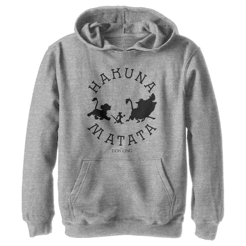 هاكونا ماتاتا "موضة عابرة"، وهذا النمط الرسمي من ديزني "الأسد الملك" ليس كذلك! يتميز هذا التيشيرت المرح للأولاد برسومات ظلية لسيمبا وتيمون وبومبا الصغار على الجهة الأمامية، مع طباعة "هاكونا ماتاتا" حولهم. لا تقلق، وأظهر فخرك بهذا الهودي الكلاسيكي.