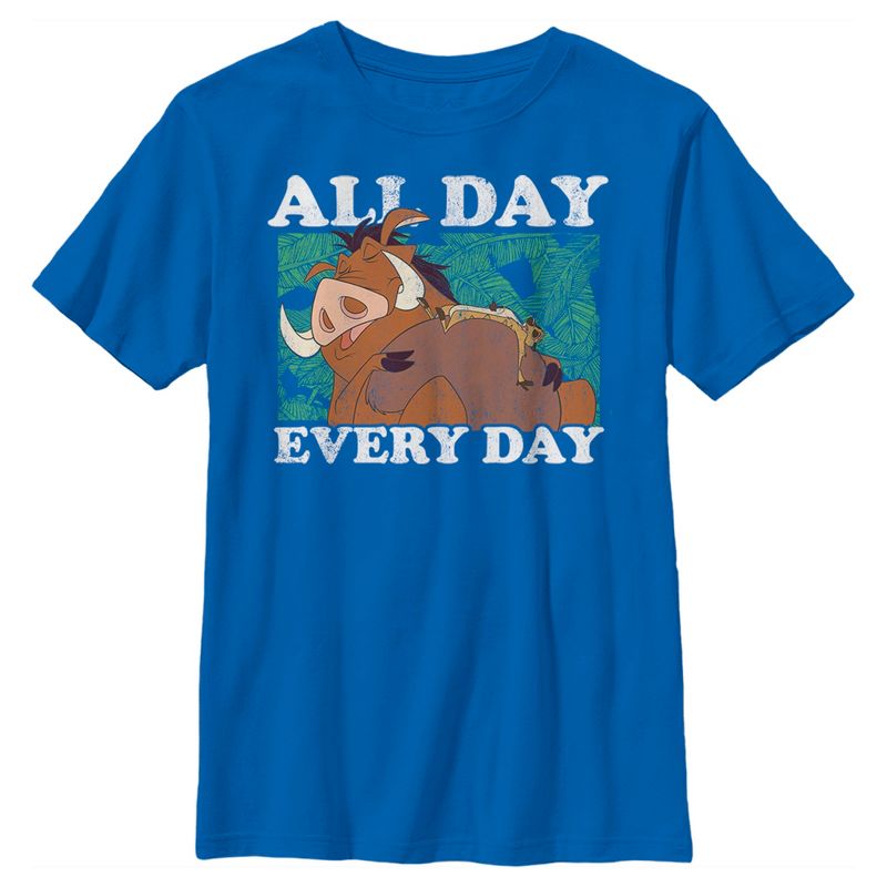 هاكونا ماتاتا "ليست مجرد موضة عابرة"، وهذا النمط المرخص رسميًا من ديزني "الأسد الملك" ليس كذلك! يتميز هذا التيشيرت المضحك للأولاد برسم تيمون وبومبا مستلقين، ومطبوع عليه عبارة "طوال اليوم، كل يوم". لا تقلق، وأظهر فخرك بهذا التيشيرت الكلاسيكي.