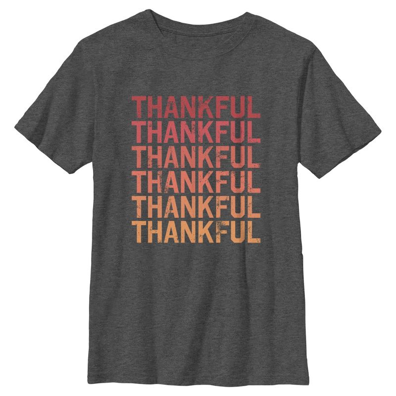 - تألقي بهذا التيشيرت العصري والجديد للأولاد، مثالي لكل المناسبات! مزين بكلمة "Thankful" بتدرج برتقالي على الجهة الأمامية.