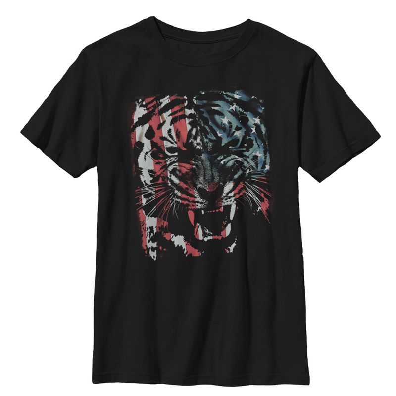 استمتع بوقتك مع تيشيرت "لوست جودز تايجر غرول" الأسود بعلم أمريكا. يتميز هذا القميص الأسود المتين برسومات نمر هادر مطبوعة بأسلوب وألوان العلم الأمريكي.