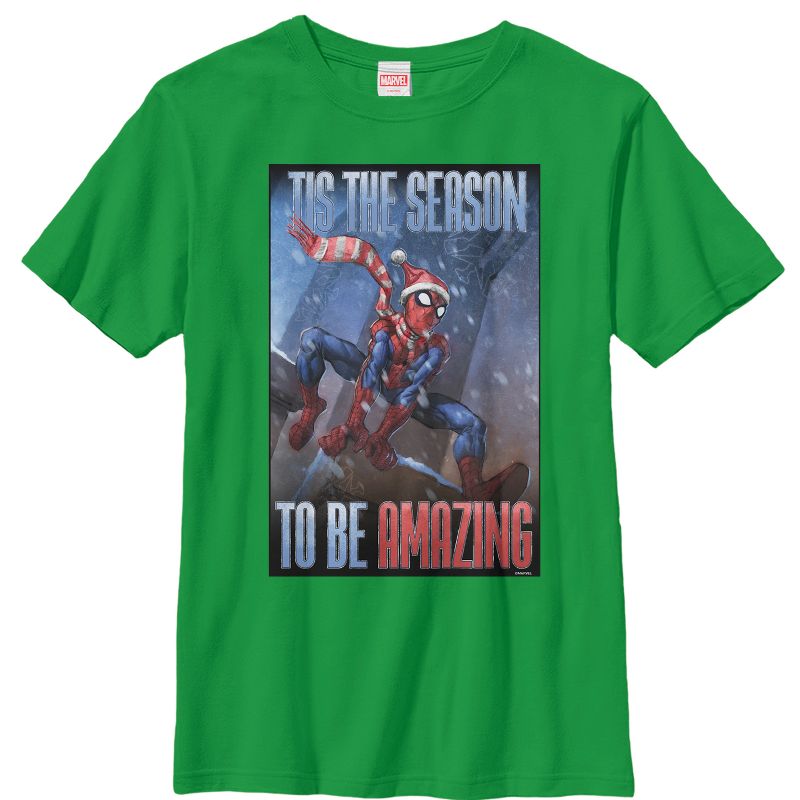 شخص ما يُدخل البهجة على قلوب الجميع في الحي، ولكنه ليس بابا نويل. إنه تيشيرت مارفل المدهش للأولاد بطبعة سانتا سبايدرمان. يرتدي سبايدرمان قبعة ووشاح سانتا، محاطًا بعبارة "هذا هو موسم البهجة" على هذا التيشيرت الاحتفالي من مارفل.
