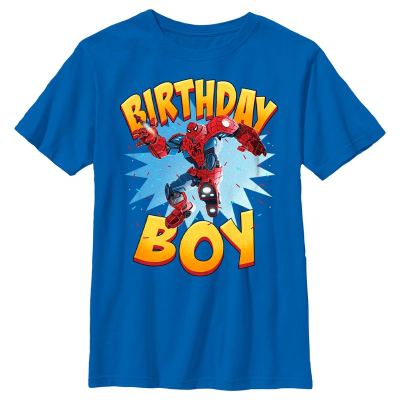 - تباهَ بأزيائكَ الأنيقة مع هذا التيشيرت الجديد للأولاد، مثالي لكل مناسبة! مُزيّن ببدلة ميك سبايدرمان من سلسلة القصص المصورة المشتقة "أفنجرز ميك سترايك".