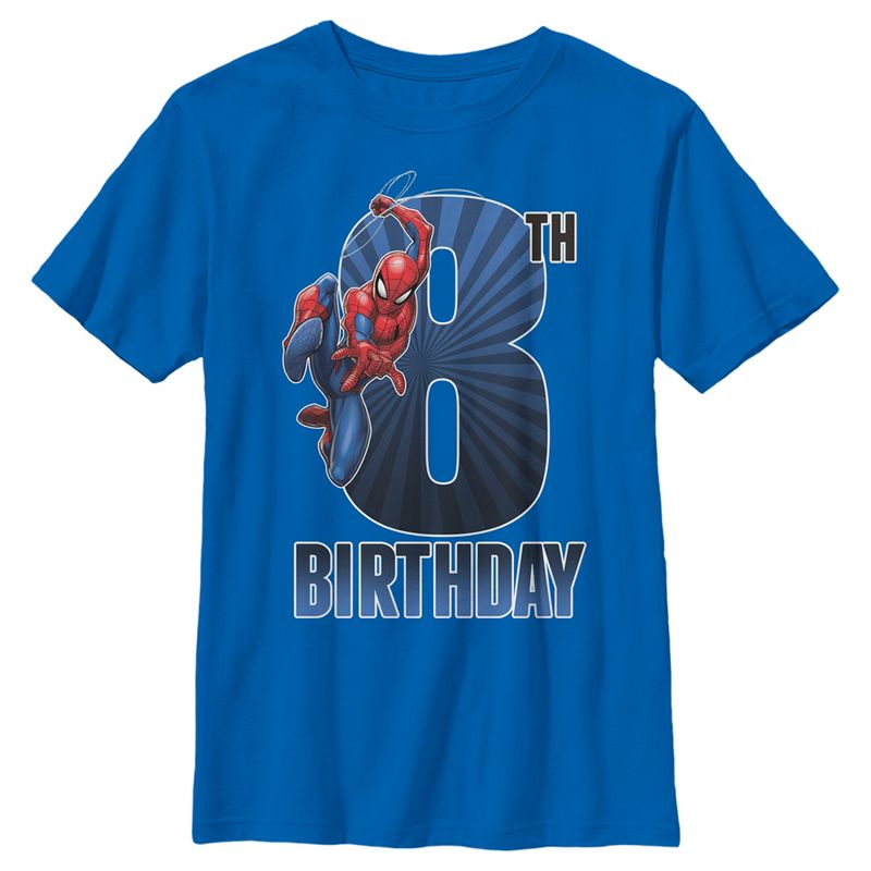 - تباهَ بجمالك مع هذا التيشيرت الجديد الأنيق للأولاد، مثالي ليومك المميز! يحمل صورة سبايدرمان وهو على وشك إطلاق شباكه عليك، متمنيًا لك عيد ميلاد سعيدًا.