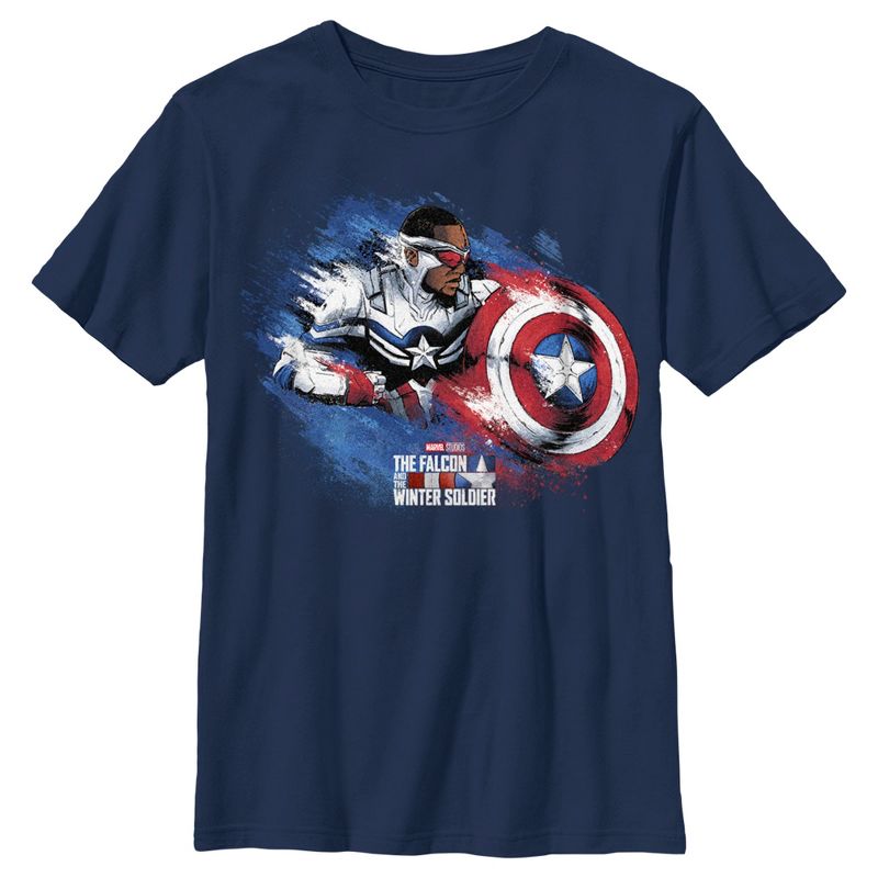 - تباهَ بملابسك الأنيقة مع هذا القميص الجديد للأولاد، مثالي لجميع المناسبات! مُزيّن بشخصياتك المفضلة، مثل كابتن أمريكا: سام ويلسون، والصقر.