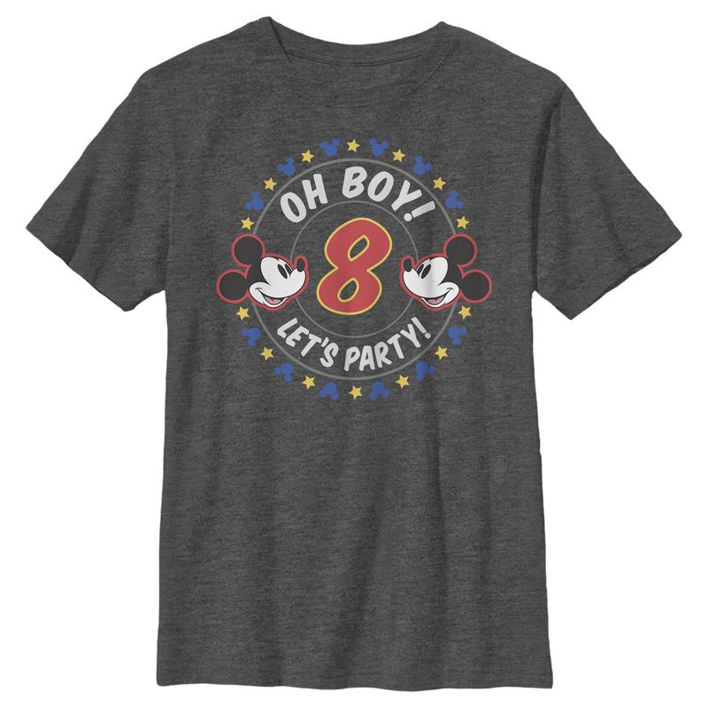 - اجعل كل احتفال بعيد ميلاد أكثر سحرًا مع هذا التيشيرت الجديد للأولاد! يحمل عبارة "يا فتى! هيا نحتفل!" داخل دائرة مزينة بوجه ميكي اللطيف ونجومه.
