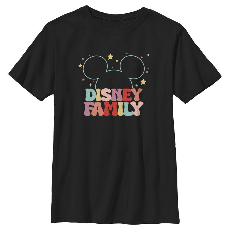 - تألقي بهذا التيشيرت الجديد والأنيق للأولاد، مثالي لجميع المناسبات! يحمل عبارة "عائلة ديزني" بأحرف ملونة ونجوم وشعار ميكي.