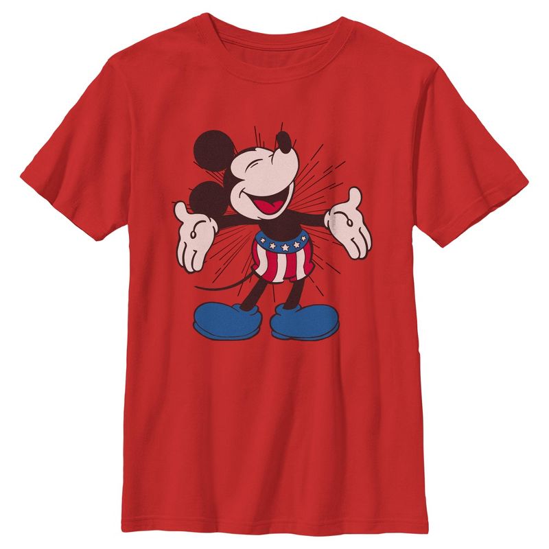 - تباهَ بملابسك الأنيقة مع هذا التيشيرت الجديد للأولاد، مثالي لاحتفالكم القادم بعيد الاستقلال الأمريكي! يتميز برسم ميكي ماوس الكلاسيكي مرتديًا شورتًا بعلم الولايات المتحدة الأمريكية، بتصميم فني عتيق على الجهة الأمامية.