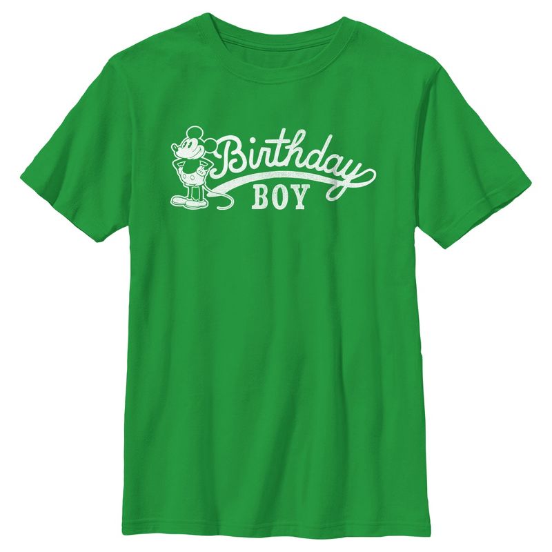 - اجعل كل احتفال بعيد ميلاد أكثر سحرًا مع هذا التيشيرت الجديد للأولاد! يتميز برسم ميكي واقفًا بجانب عبارة "فتى عيد الميلاد" بأحرف بيضاء باهتة على الجهة الأمامية.