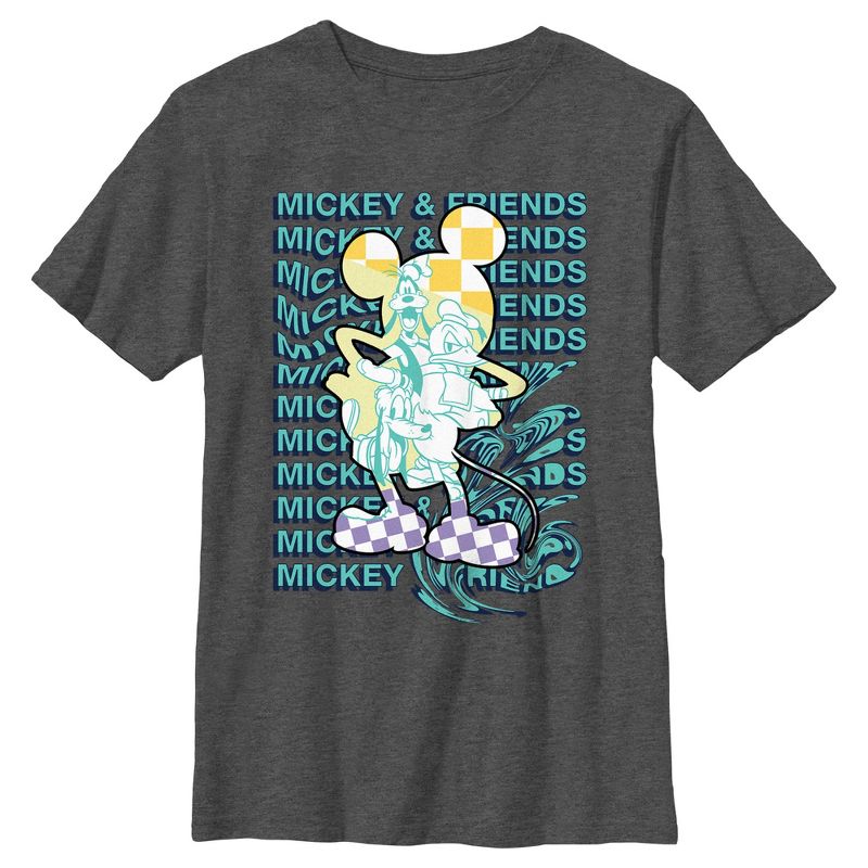 - تباهَ بإطلالة مميزة مع هذا التيشيرت الجديد والأنيق للأولاد، مثالي لجميع المناسبات! يتميز برسم ميكي كبير مع عبارة "ميكي وأصدقاؤه" مشوهة في الخلفية.