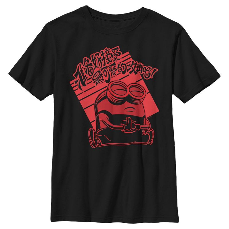 - استمتع بالراحة والأناقة في نفس الوقت مع تصميم هذا التي شيرت الجرافيكي الفريد للأولاد من Minions: Rise of Gru.