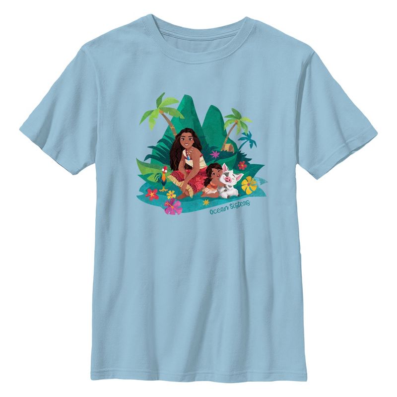 - تباهَ بجمالك مع هذا التيشيرت الجديد الأنيق للأولاد، مثالي لجميع المناسبات! يتميز برسومات ملونة وجذابة لموانا وهيهي وسيميا يحتضنّ بوا، بينما يجلسن معًا بين الزهور وأشجار النخيل، مع عبارة "أخوات المحيط" مطبوعة أسفله.