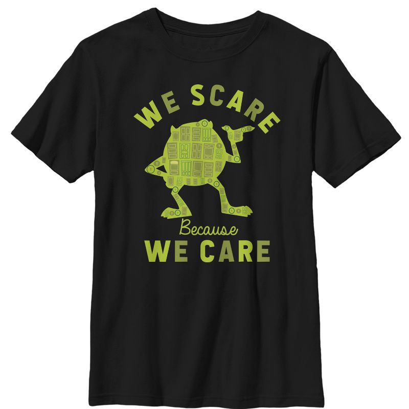 لا شيء يُثير الرعب في الأزياء المرحة مثل هذا التيشيرت الرسمي المُرخّص من شركة المرعبين المحدودة للأولاد من بيكسار. وحشك المُفضّل، مايك، مُزيّن بأبواب وكتابة "نُخيف لأننا نهتم" بألوان زاهية على هذا التيشيرت الشبابي الرائع. استعدوا للرعب بأناقة مع تيشيرت بيكسار الجميل اليوم!