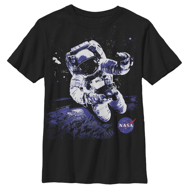 اجعل منزلك بين النجوم مع تيشيرت رواد فضاء ناسا للأولاد. يتميز هذا التيشيرت بطبعة باهتة لرائد فضاء ناسا وهو يسبح في أعماق الفضاء.