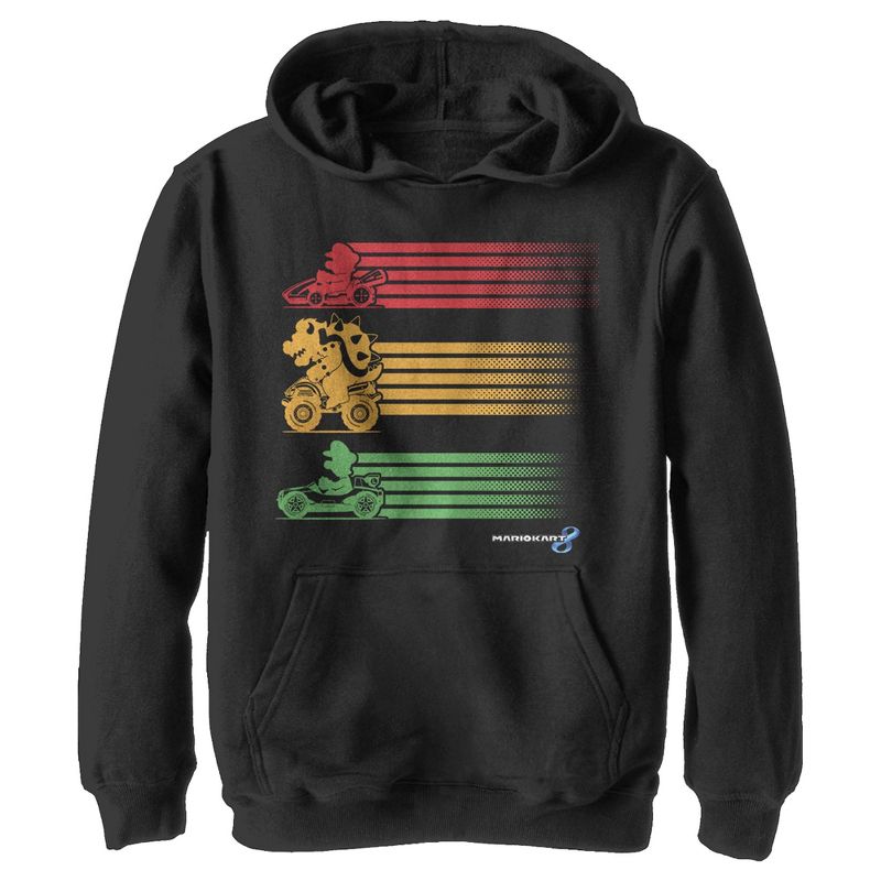 - تباهَ بملابسك الأنيقة مع هذا الهودي الجديد للأولاد، مثالي لجميع المناسبات! يتميز برسومات رائعة لماريو وباوزر ولويجي بألوان إشارة المرور، وهم يقودون سياراتهم ويتركون وراءهم آثارًا ملونة.