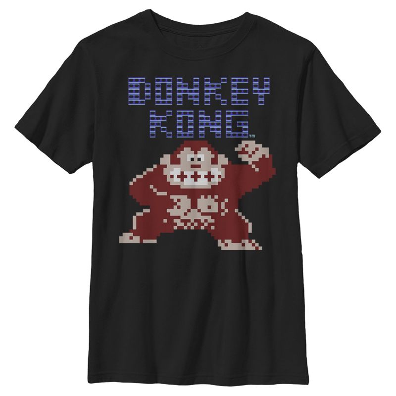 دونكي كونج ذو البكسلات يدوس ويثور على تيشيرت نينتندو دونكي كونج أركيد للأولاد! هذا التيشيرت الرائع برسومات نينتندو سيعيدك إلى أيام ألعاب الأركيد الكلاسيكية برسوماته البكسلاتية وكلمة "دونكي كونج" المطبوعة فوقه.
