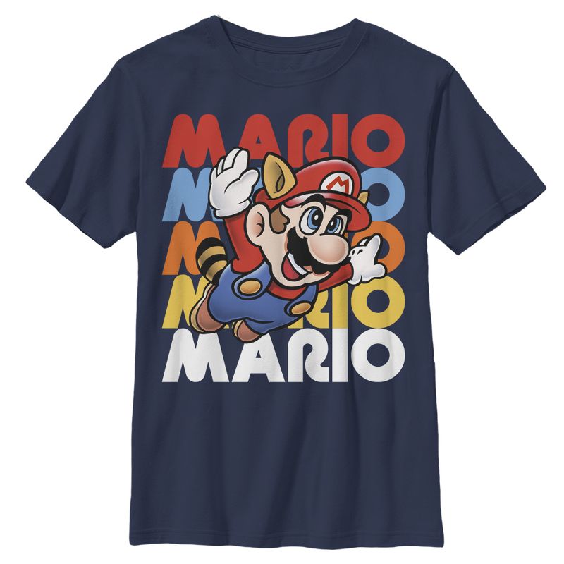 يبدو أن تيشيرت نينتندو فلاينج راكون ماريو الأزرق الداكن قد وجد ورقة شجر خارقة! كلمة "ماريو" مطبوعة بخمسة ألوان مختلفة خلف راكون ماريو وهو يحلق بسعادة على واجهة هذا التيشيرت الأزرق الداكن الرائع.