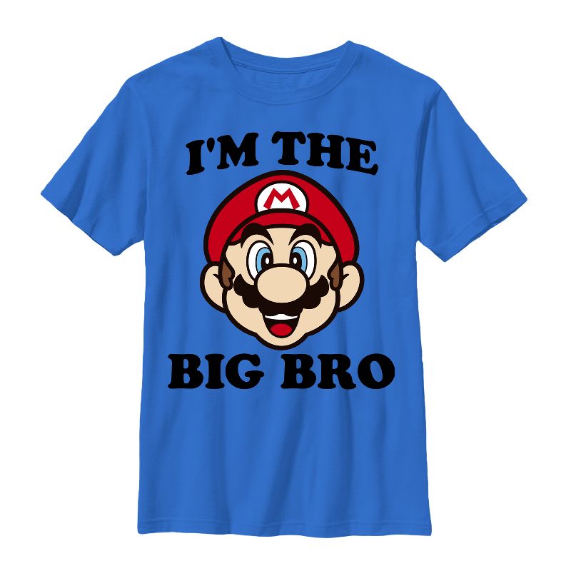 الأخ الأكبر يعرف ما هو الأفضل، ولذلك يختار دائمًا تيشيرت نينتندو ماريو "الأخ الأكبر" الأزرق الملكي! يبتسم سوبر ماريو من مقدمة هذا التيشيرت الأزرق المتين، وبجانبه عبارة "أنا الأخ الأكبر".