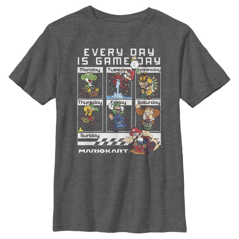 استمتع بأسلوب كلاسيكي مع هذا التيشيرت الولادي من نينتندو ماريو كارت Everyday Is Game Day! افتح عدداً من مجلة نينتندو باور، وأدخل رمز الغش، واستمتع بحياة لا نهائية، وكن رائعاً!