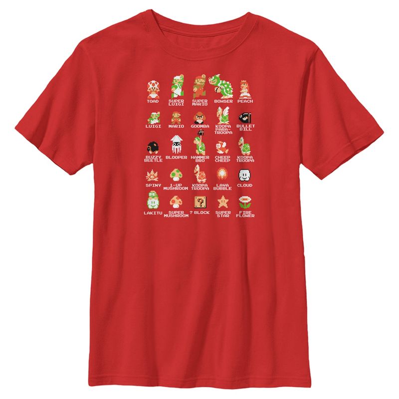 تعرّف على شخصيات نينتندو الكلاسيكية مع تيشيرت دليل شخصيات سوبر ماريو بروس للأولاد من نينتندو! باوزر، بيتش، تشيب تشيب، فاير فلاور، وشائك، ليست سوى بعض من شخصيات سوبر ماريو بروس المنقطة المطبوعة على هذا القميص الرائع.