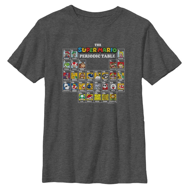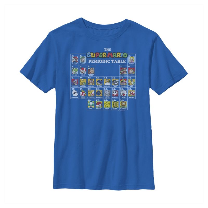 استمتع بأسلوب كلاسيكي مع هذا التيشيرت الأولادي من نينتندو سوبر ماريو بجدول دوري! افتح عدداً من مجلة نينتندو باور، وأدخل رمز الغش، واستمتع بحياة لا نهائية، وكن رائعاً!