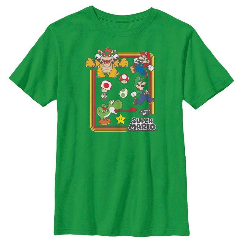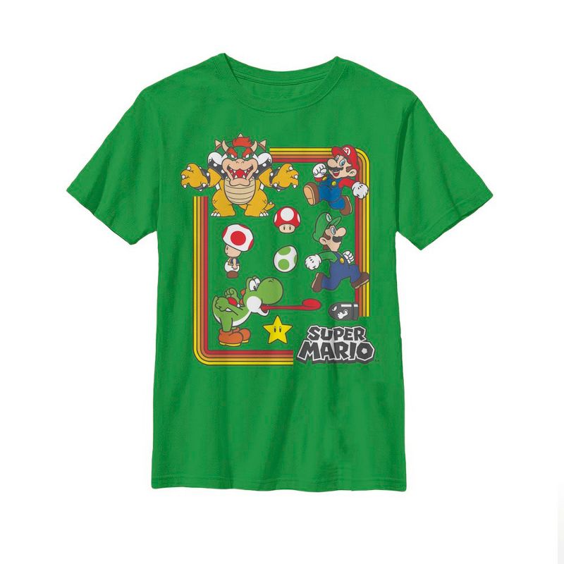 إذا كان سوبر ماريو هو فتاك المفضل، فامنحه إطارًا واستعرضه بقميص نينتندو سوبر ماريو كيلي الأخضر بإطار قوس قزح. جميع شخصياتك المفضلة، مثل ماريو ولويجي ويوشي وباوزر، وغيرهم، محاطة بإطار قوس قزح على هذا القميص الأخضر الكلاسيكي للأولاد من نينتندو.