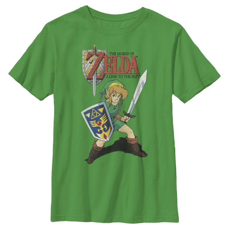 - تباهَ بجمالك مع هذا التيشيرت الجديد والأنيق للأولاد، مثالي لجميع المناسبات! يتميز برسم كلاسيكي رائع للينك وهو يحمل سيفه ودرعه الشهير، وشعار زيلدا مطبوع فوقه.
