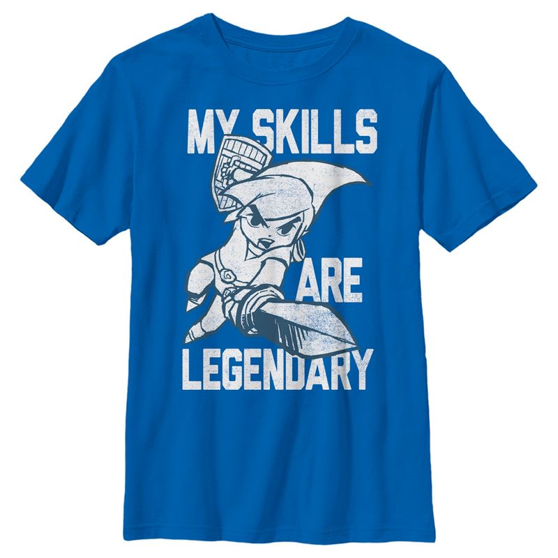- تباهَ بمهاراتك مع هذا التيشيرت الجديد والأنيق للأولاد، مثالي لجميع المناسبات! يحمل صورة لينك من فرقة ويند ويكر، مع عبارة "مهاراتي أسطورية" على الجهة الأمامية.