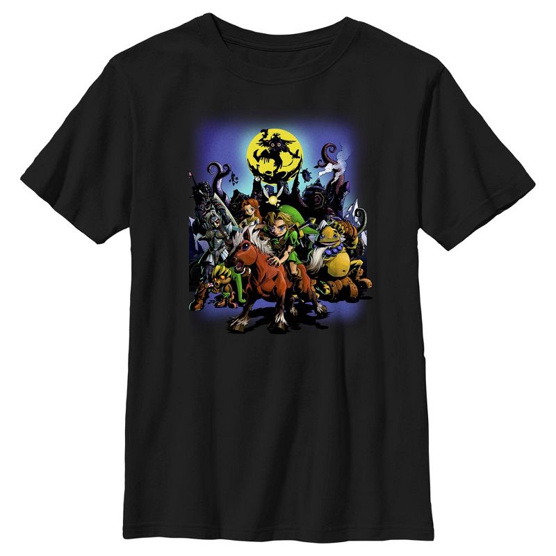 - تباهَ بأزيائكَ الأنيقة مع هذا التيشيرت الجديد للأولاد، مثالي لجميع المناسبات! يتميز برسومات رائعة لأسطورة زيلدا: قناع ماجورا، مع لينك وهو يمتطي إيبونا، بالإضافة إلى لينك بأنواع مختلفة وفقًا لرحلاته.