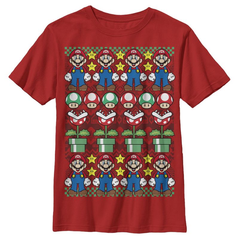 - تباهَ بملابسك مع هذا القميص الجديد الأنيق للأولاد بمناسبة عيد الميلاد، مثالي لجميع المناسبات! مُزيّن بشخصياتك المفضلة مثل ماريو.