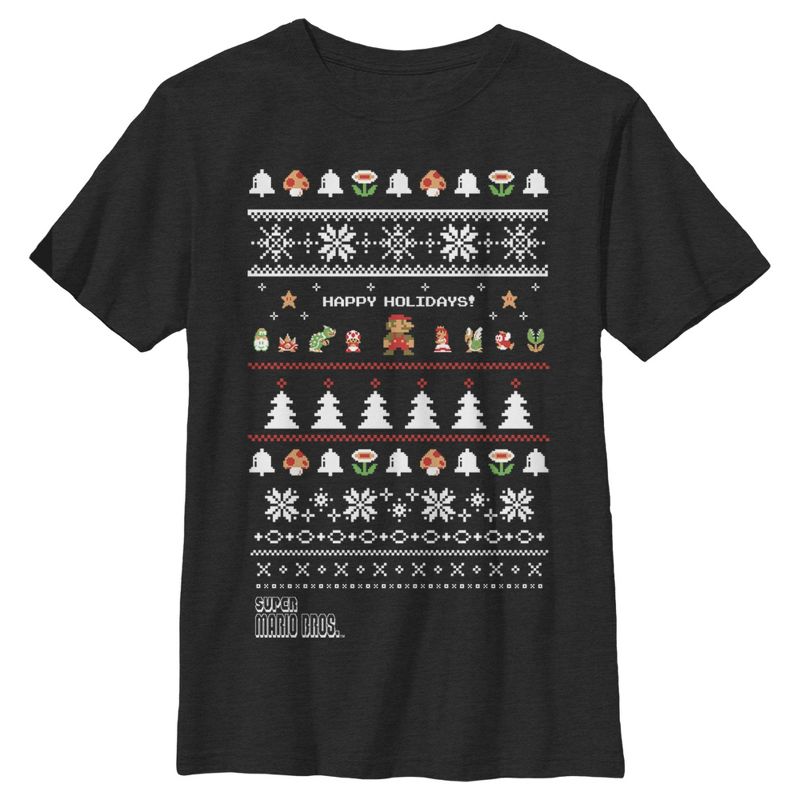 الآن، يُمكن للاعبين الاستمتاع بأجواء العيد مع تيشيرت نينتندو سوبر ماريو للأولاد بطبعة عيد الميلاد البشع! تسوّقوا ملابس العيد المزينة برسومات ماريو، دونكي كونج، لينك، زيلدا، وجميع شخصيات نينتندو المفضلة لديكم.