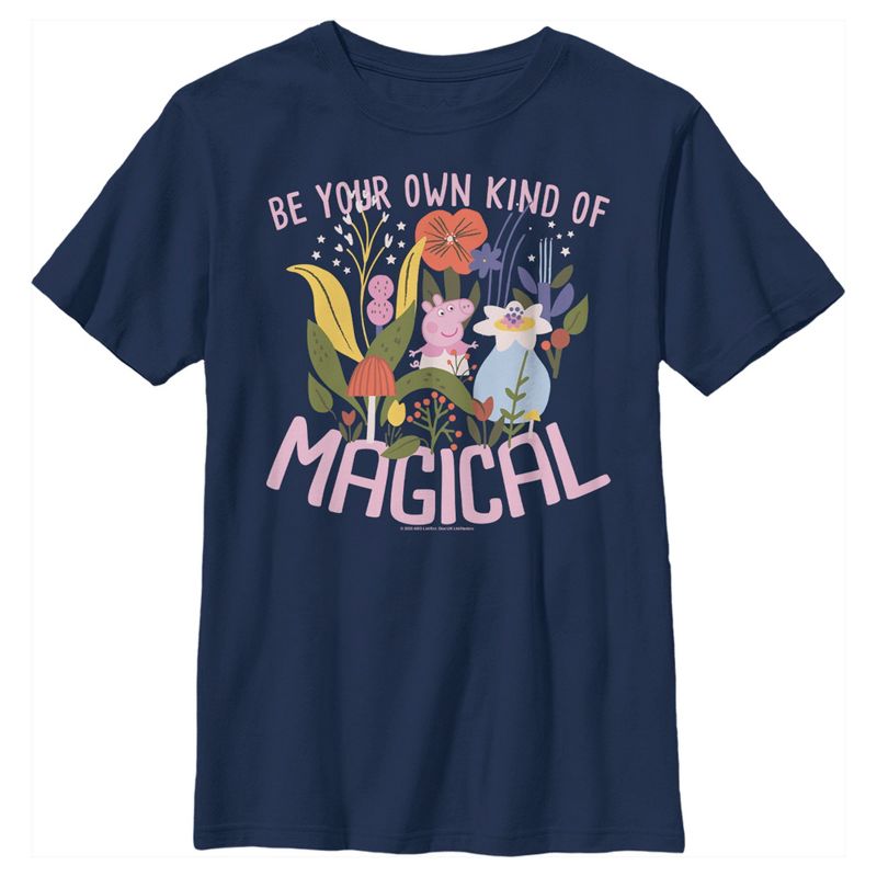 - تباهَ بأزيائكَ الأنيقة مع هذا التيشيرت الجديد للأولاد، مثالي لكل مناسبة! يتميز برسم بيبا بيغ اللطيف محاطًا بأزهار جميلة ملونة، وكتابة "كن ساحرًا على طريقتك الخاصة" مطبوعة على الجهة الأمامية.