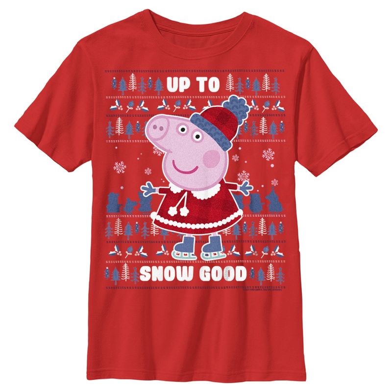 - استمتع بالراحة والأناقة في نفس الوقت مع تصميم هذا التي شيرت الرسومي الفريد من نوعه لأولاد عيد الميلاد من Peppa Pig.