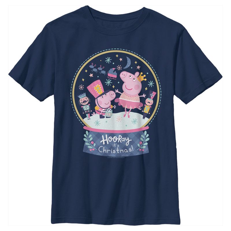 - تباهَ بأزيائكَ المميزة مع هذا التيشيرت الجديد والأنيق للأولاد، مثاليٌّ للأعياد! يُزيّنه رسم بيبا وجورج داخل كرة ثلجية مع كسارتي جوز، مع عبارة "يا هلاّ، إنه عيد الميلاد".