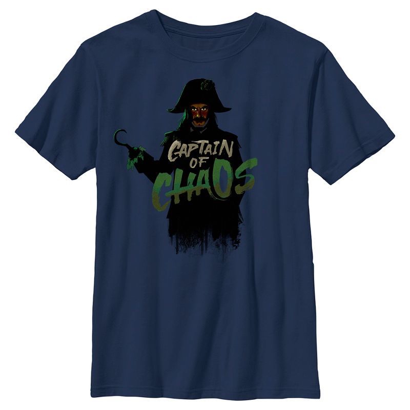 - يأتي الإيمان والثقة وغبار البيكسي مع هذا القميص الجديد الأنيق للأولاد والذي يتميز بوجود كابتن هوك بمظهر مخيف وعبارة: "كابتن الفوضى" مطبوعة على الجهة الأمامية!