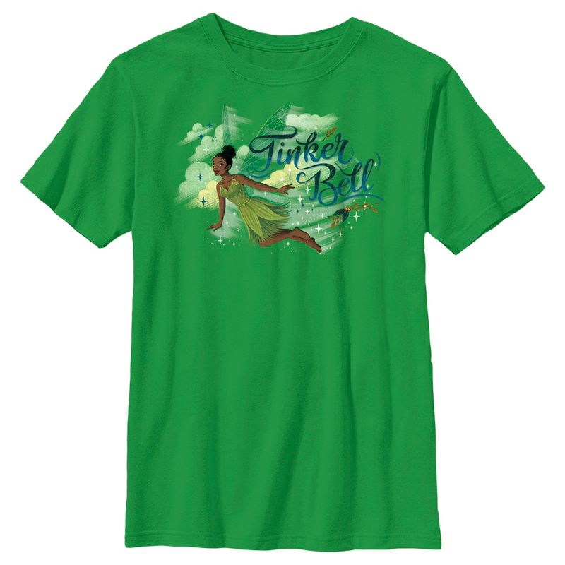 - يأتي هذا القميص الجديد الأنيق للأولاد مع الإيمان والثقة وغبار الجنيات والذي يتميز برسومات لطيفة لتينكر بيل وهو يطير فوق السحاب.