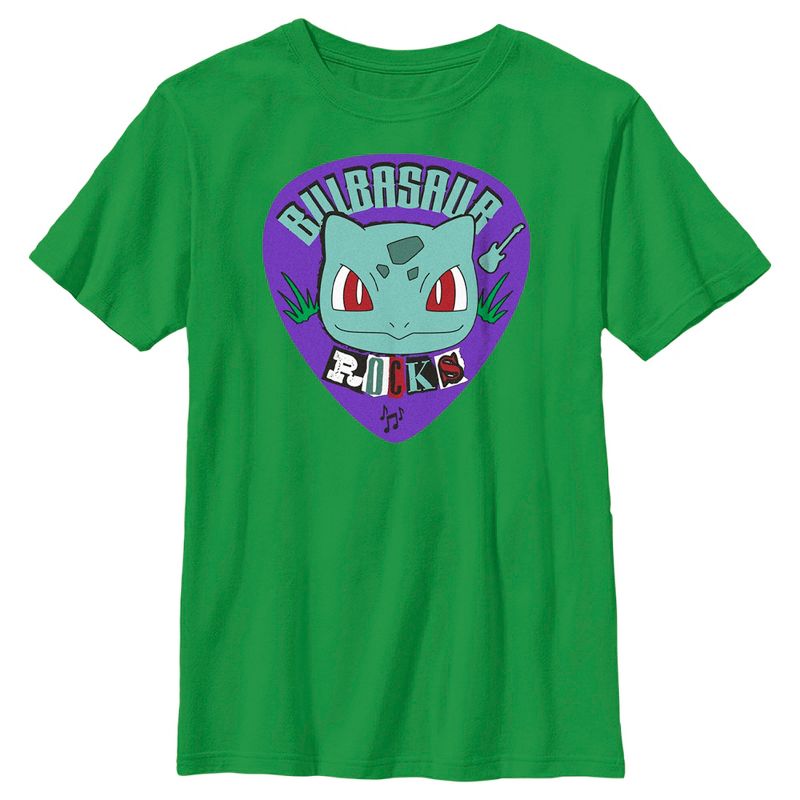 - تباهَ بأزيائكَ الأنيقة مع هذا التيشيرت الجديد للأولاد، مثالي لكل مناسبة! يحمل صورة بولباسور مع عبارة "بولباسور روكس" داخل ريشة غيتار على الجهة الأمامية.