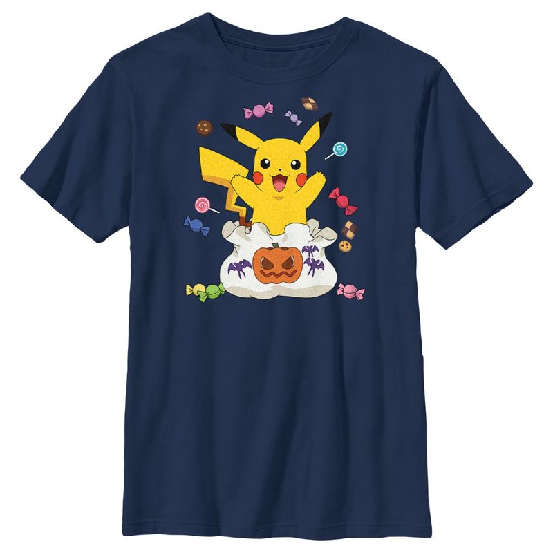 - تباهَ بملابسك الأنيقة مع هذا التيشيرت الجديد للأولاد بمناسبة الهالوين! يحمل صورة بيكاتشو مع كيس مليء بحلوى الهالوين!