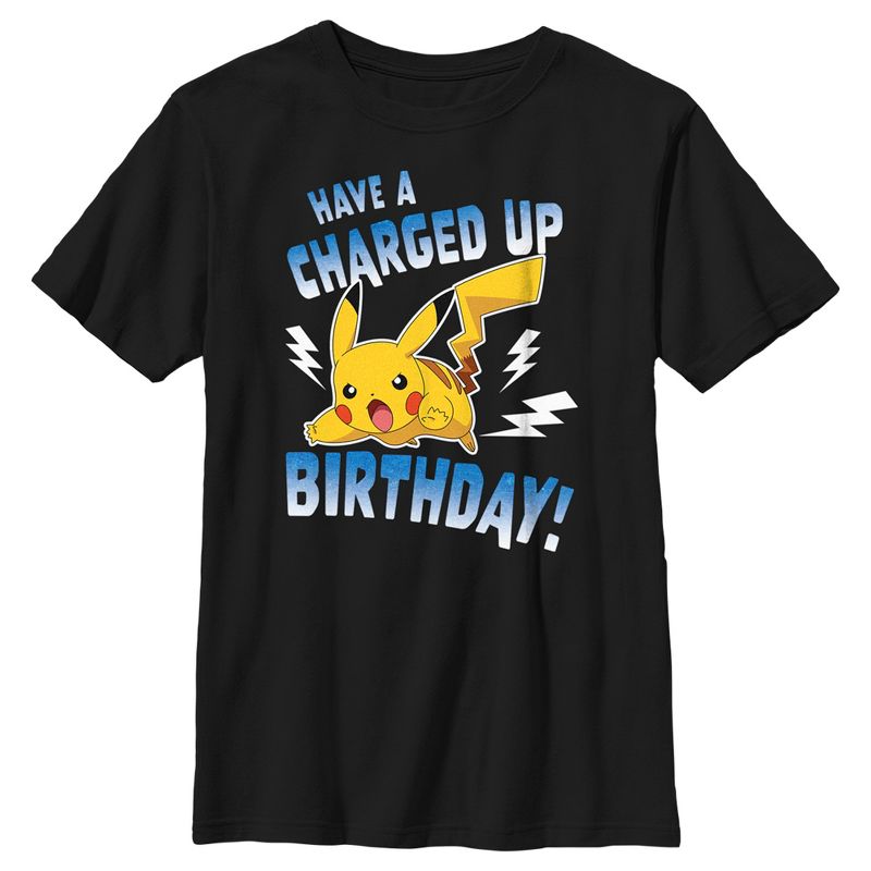 - احتفل بيومك الخاص مع هذا القميص الرائع للأولاد والذي يظهر بيكاتشو وهو يركض ليكون أول من يعانقك في عيد ميلادك مع عبارة "Have a Charged Up Birthday!" المطبوعة على الجهة الأمامية مع صواعق البرق!