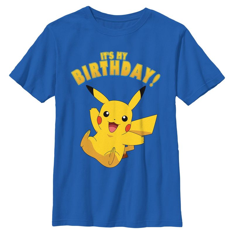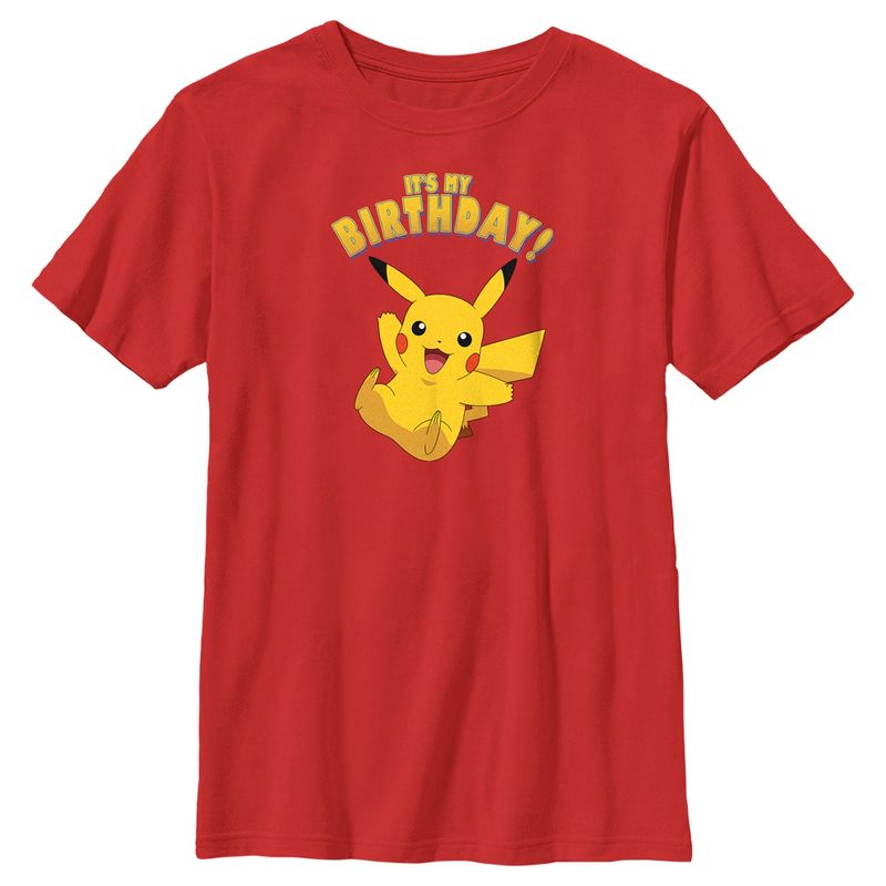 لا تفوتوا فرصة اصطيادهم جميعًا! انغمسوا في عالم بوكيمون الشهير، مع بطاقاته، وألعاب الفيديو، وبرامجه التلفزيونية، وغيرها الكثير، مع ملابس جديدة مرخصة رسميًا وجذابة لجميع أفراد العائلة، تحمل جميع بوكيموناتكم المفضلة! يتميز هذا التيشيرت المطبوع عليه "بوكيمون بيكاتشو، إنه عيد ميلادي" للأولاد برسم بيكاتشو لطيف مبتسم يقفز في المنتصف، مع عبارة "إنه عيد ميلادي!" بأحرف صفراء في الأعلى. احصلوا على أحد هذه التيشيرتات الجديدة ليومكم المميز، واجعلوا أصدقائكم يحسدونكم!