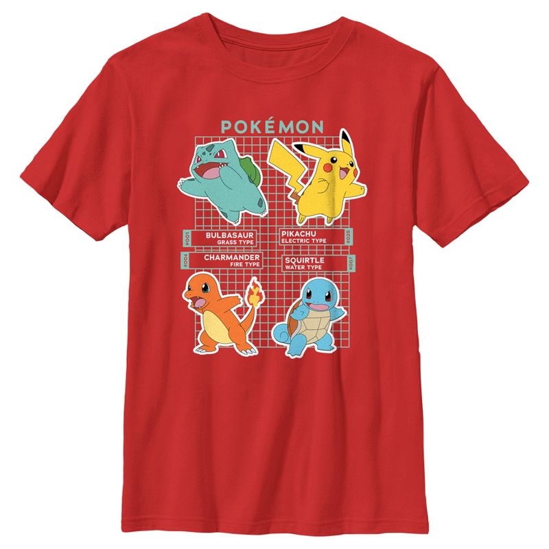 - تباهَ بجمالك مع هذا التيشيرت العصري الجديد للأولاد، مثالي لكل مناسبة! يتميز برسومات بولباصور، بيكاتشو، تشارمندر، وسكويرتل على شبكة مع أسمائهم وأنواعهم على الجهة الأمامية.