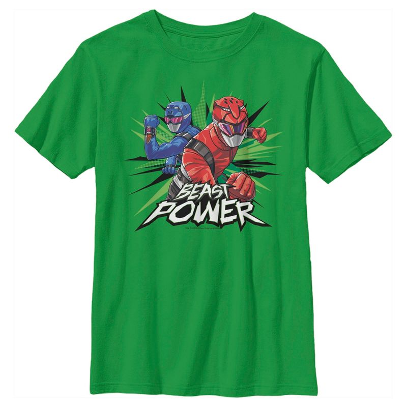 - تباهَ بملابسك الأنيقة مع هذا التيشيرت الجديد للأولاد، مثالي لجميع المناسبات! يتميز بشخصيات بيست مورفر رينجرز الزرقاء والحمراء، المستعدة للانطلاق.