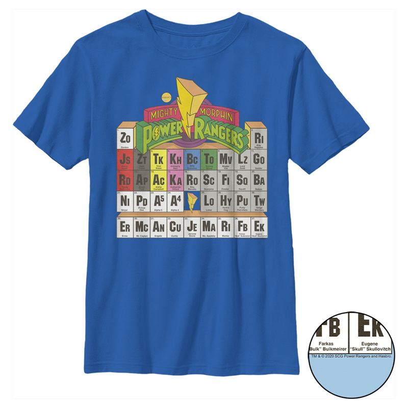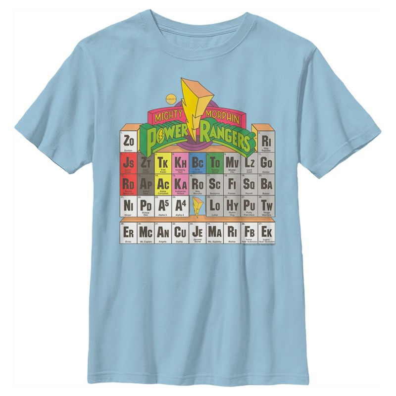 - تباهَ بملابسك مع هذا التيشيرت الجديد والأنيق للأولاد، مثالي لجميع المناسبات! يتميز بشخصيات سلسلة باور رينجرز كعناصر في الجدول الدوري للعناصر.