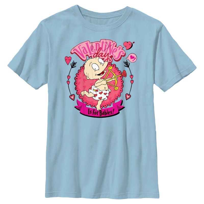 استمتع بأجواء عيد الحب مع هذا التيشيرت الرسمي للأولاد من نيكلوديون راغراتس، باللون الأزرق الفاتح، والمرخص رسميًا، والمُزين برسومات "عيد الحب للأطفال"! يتميز هذا التيشيرت بشخصية تومي بيكلز، مرتديًا حفاضة على شكل قلب، ويحمل قوسًا وسهمًا. من المؤكد أنك ستجذب جميع مُحبي راغراتس، وربما حتى تحصل على هدية عيد حب جميلة! تألق هذا الموسم مع هذا التيشيرت الجديد ذي الرسومات!