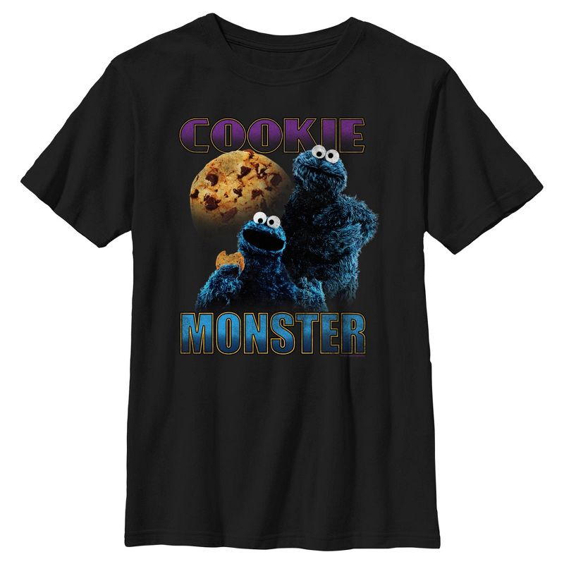 - تباهَ بإطلالة أنيقة مع هذا التيشيرت الجديد للأولاد، مثالي لجميع المناسبات! يتميز بصور مستوحاة من الماضي لوحش الكعك وهو يأكل (كما توقعت) كعكة.