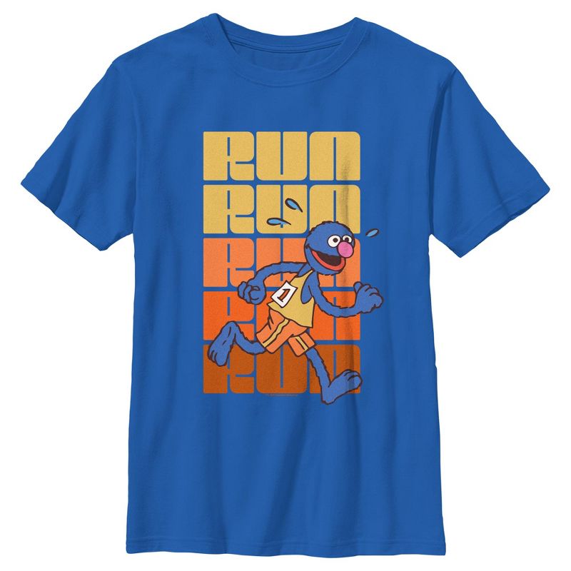 - تباهَ برشاقتك مع هذا التيشيرت الجديد الأنيق للأولاد، مثالي لجميع المناسبات! يتميز بشخصية غروفر الرياضية وهو يركض على المقدمة، وكلمة "اركض" مكررة عدة مرات خلفه بأحرف صفراء وبرتقالية وبنية.